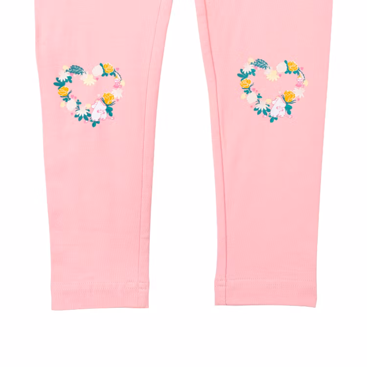 Mjuka och mysiga Mumin leggings för barn, med infälld resår i midjan och söta Mumin-tryck på knäna. Produkten innehåller certifierad ekologisk bomull. Öko-tex.