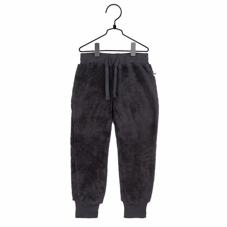 En supermjuk och fluffig barnbyxa i pile. Byxan är svart, med resår med dragsko i midjan och muddar i bensluten. 100% återvunnen polyester. Öko-tex.
