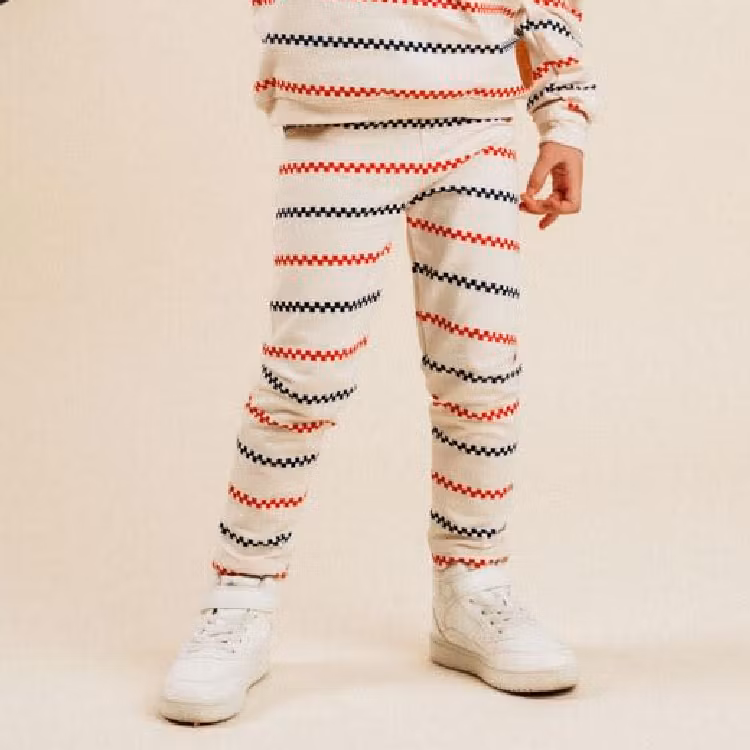 Sköna, benvita leggings i sweatshirtkvalitet med mjuk, borstad insida. Leggingsen är benvita med Pippi Långstrump-rutränder i rött och blått. I midjan har de infälld resår och i övre kanten ett runt Pippi Långstrump-märke i läderimitation. Ekologisk bomullsblandning. Öko-tex.
