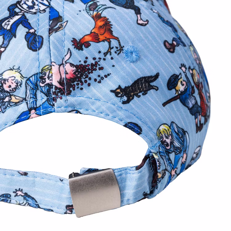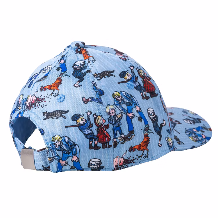 En klassisk Emil keps för barn. Med förböjd skärm, stadig framdel, broderade ventilationshål och ett justerbart spänne baktill. Miljösmart tillverkad i återvunnen, GRS-certifierad polyester.