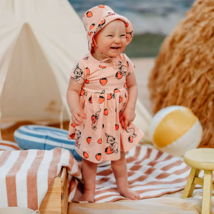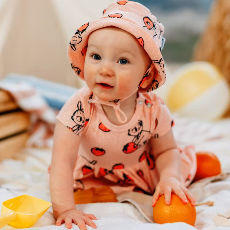 En Muminsolhatt för barn, tillverkad av GOTS-certifierad organisk bomullsblandning, som är mjuk och skön.