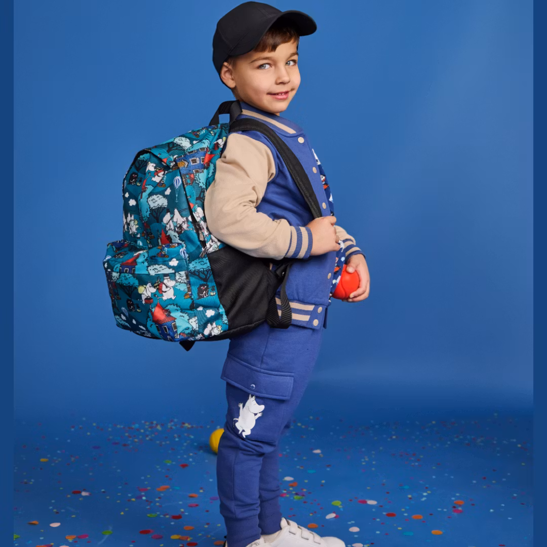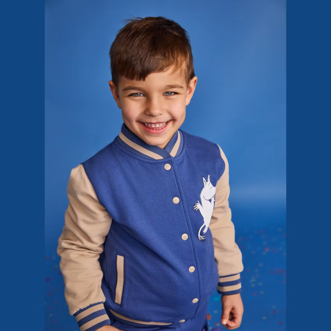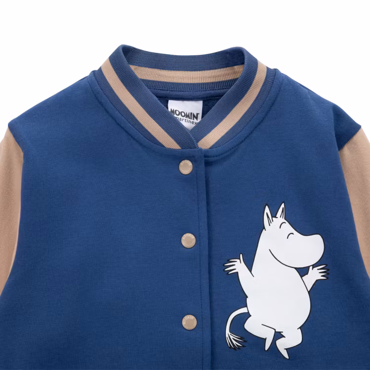 En mjuk och mysig Mumin jacka i sweatshirtkvalitet för barn. Med fickor, tryckknappar framtill och muddar i halsringning, nederkant och ärmslut samt ett fint Mumin-tryck framtill.