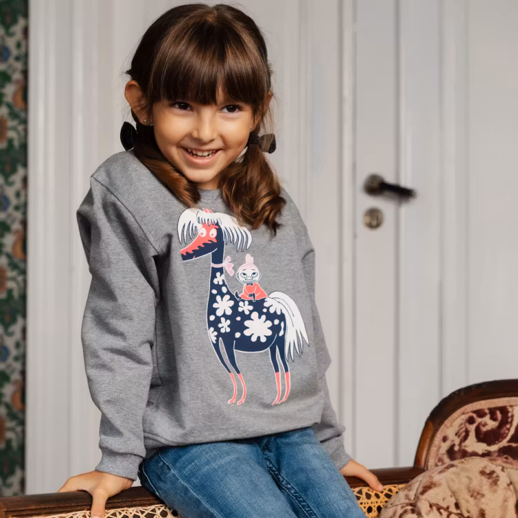 En mjuk och mysig Mumin collegetröja för barn. I sweatshirtkvalitet med borstad insida. Med långa ärmar, en rund halsringning och ett fint tryck framtill.