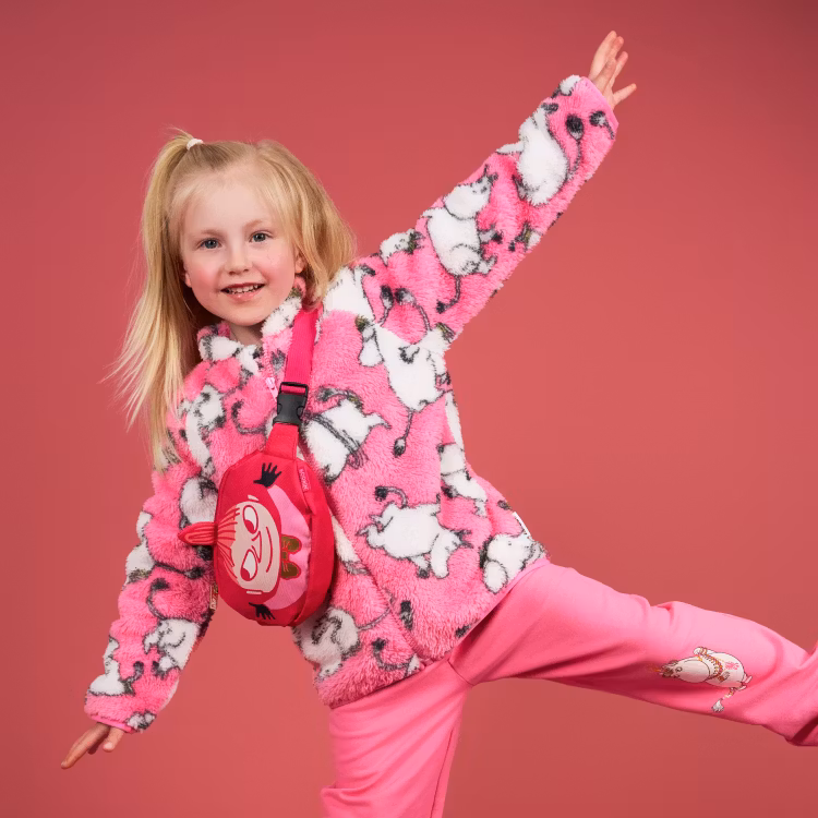 En mjuk och skön Mumin fleecejacka för barn, i supermjuk pile som är lika mjuk på insidan som på utsidan. Med lång raglanärm, liten ståkrage och blixtlås. Tillverkad i återvunnen polyester. Öko-tex.