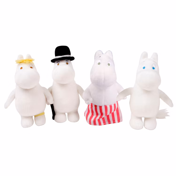 En sortering om fyra mjuka och gosiga muminmjukisar. Mjukisarna är ca 15 cm höga. Sorteringen består av Mumintrollet, Snorkfröken, Muminamman och Muminpappan. Tvättbara max 30 °C. Alla Martinex mjukisar är CE-märkta, giftfria och barnsäkra med dragfasta sömmar och detaljer. 0+