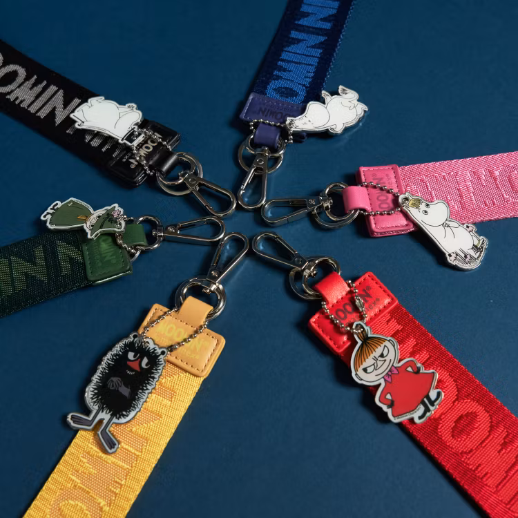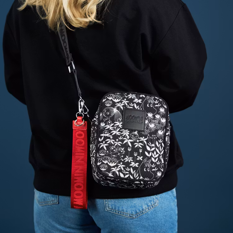 En rolig Mumin nyckelhållare och väskdekoration tillverkad i stadig, röd polyestercanvas. Storleken är 4 x 27 cm och den har ett Lilla My-hänge i metall, samt rund nyckelring och praktiskt clip-lås. Lätt att haka fast var du vill!