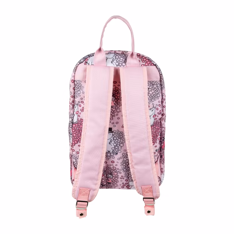En söt ryggsäck tillverkad i stadig polyestercanvas. Med dubbla dragkedjor och inuti finns det ett fack med elastisk kant in mot ryggen. Framtill finns det en stor, välvd ytterficka med dubbla dragkedjor. Ryggsäcken har justerbara, vadderade axelremmar och ett litet bärhandtag upptill. Volymen är ca 15 liter.